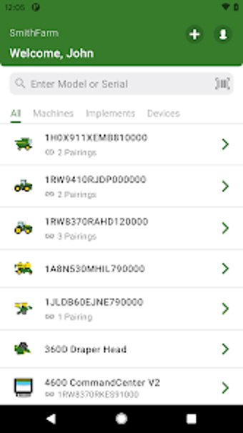さらに、このアプリはJDLink Connectを介してジョン・ディア・オペレーションセンターとシームレスに統合されており、ユーザーは接続されたデバイスを監視し、シリアル番号、モデル年、ソフトウェアバージョンなどの重要な機械情報にアクセスできます。ユーザーはシリアル番号をスキャンすることで新しい機器を簡単に追加し、アプリを通じてお気に入りのディーラーに直接連絡できます。全体として、エクイップメントモバイルは、機器管理に関する洞察を得たいすべての人にとって包括的なソリューションです。
